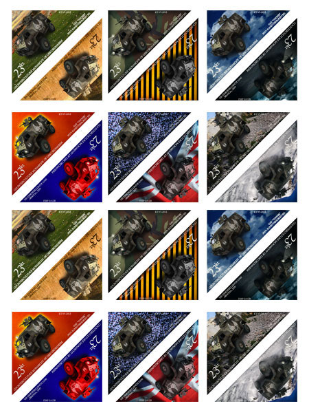 - 12 stamps on one sheet.